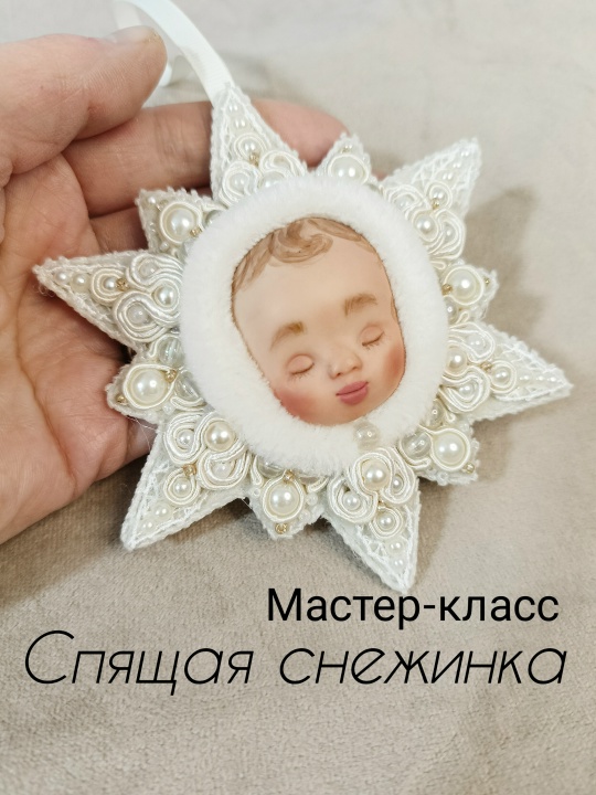 В результате у вас в руках окажется нежная снежинка со спящим детским личиком, которая не только украсит вашу новогоднюю ёлочку, но и будет радовать и согревать вас всю зиму.